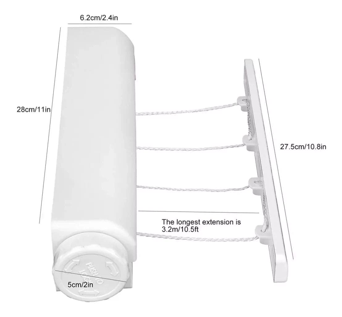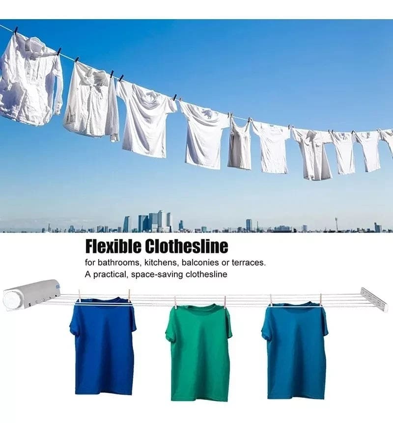Su diseño retráctil y expansible permite que este tendedero se adapte perfectamente a cualquier espacio, ya sea en el baño, la cocina, el balcón o la terraza. ¡Es la solución ideal para cualquier estilo de vida!